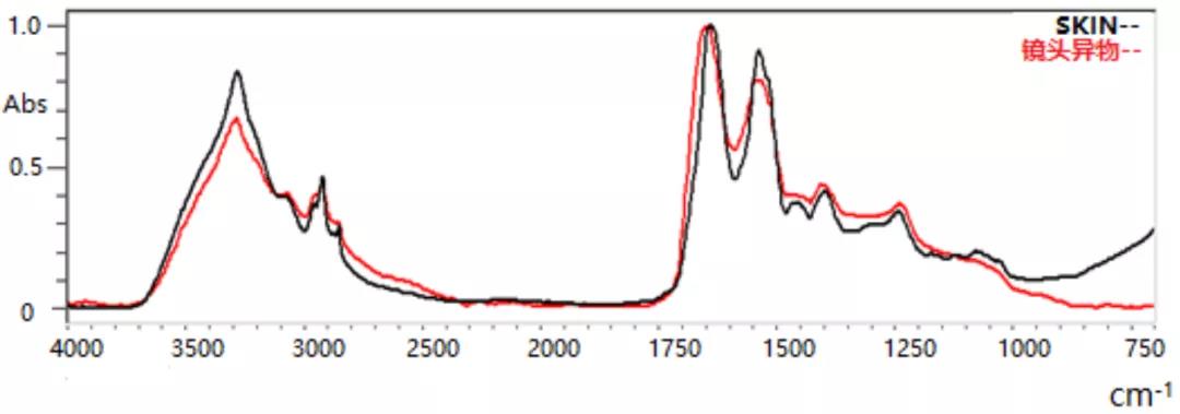 上圖中,黑色譜圖爲焊錫不良處(chù)的紅(hóng)外譜圖,紅(hóng)色譜圖爲IRON NAPHTHENATE(環(huán)烷酸鐵(tiě)鹽)的标準紅外譜圖,兩圖在多處(chù)出峰位置一緻,推斷(duàn)樣品中含有環烷酸類物質。